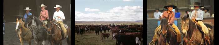 It features events that mimic the real life working situations of the buckaroo (va-que-ro). It is not a ranch rodeo; the events at "The Californios" are not timed. They are judged by a panel of highly qualified and respected judges who study each team and score them. Things like the size of the loop, the distance thrown, the handling of the slack, the control of the dally, their horsemanship, handling of the cattle, sportsmanship and style are all scored and recorded. Cattle are roped out of "the rodear" (herd) as teams of two or three cowboys expertly lay them down for doctoring or branding.